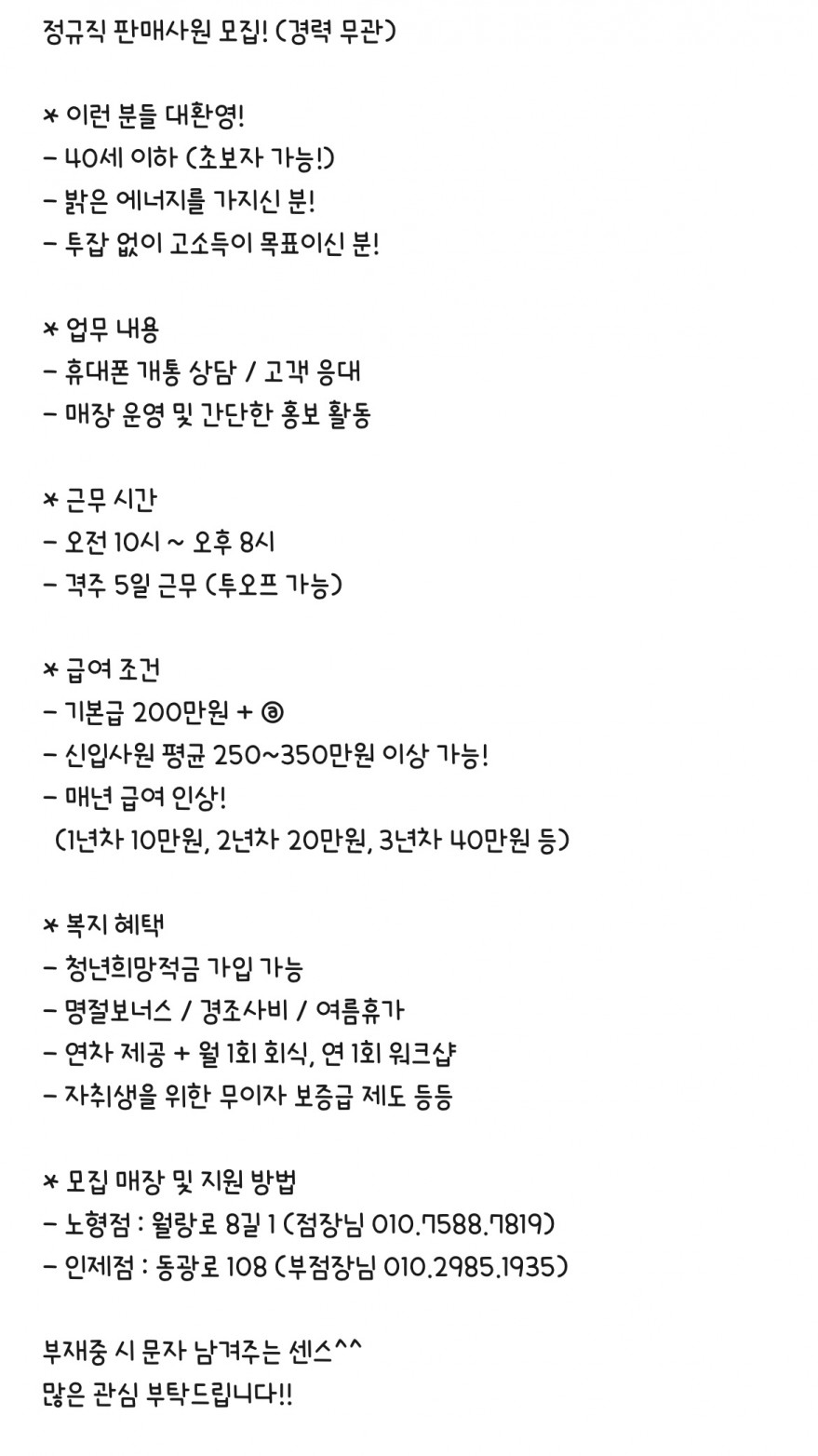 통신3사⭐️비상!OnlyOne⭐️직원모집 페이지 정보 작성자 아O라 작성일25-11-19 16:42 조회45회 연락처 010-7588-7819 급여 월급 : 250만원 이상 관련링크 본문 . 주소 : 제주 제주시 월랑로 8길 1 이전글 다음글 목록