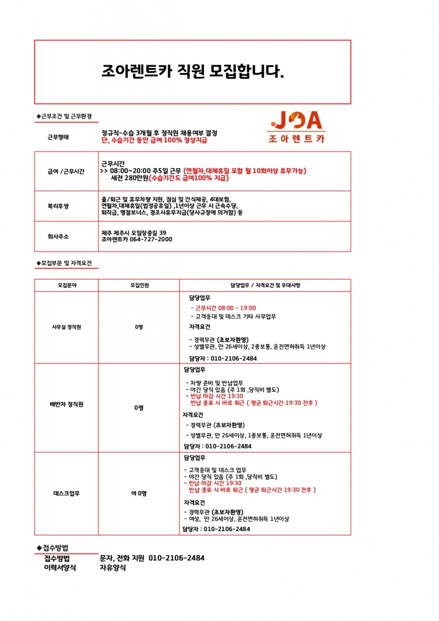 ❤️❤️❤️ᕕ( ᐛ )ᕗ조아렌트카 / 출퇴근 휴무 차량 지원❤️❤️❤️예약실 데스크 배차 페이지 정보 작성자 쎄OO어 작성일25-12-04 17:11 조회817회 연락처 010-2106-2484 급여 월급 : 280만원 관련링크 본문 주소 : 제주특별자치도 제주시 오일장중길 39 조아렌트카 이전글 다음글 목록