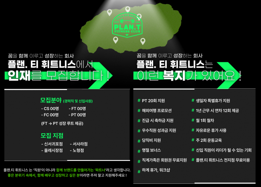 ❤️❤️❤️신규 플랜티피트니스 노형 4호점 함께할 인재를 모집합니다❤️❤️❤️