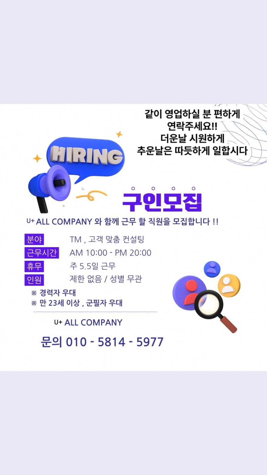 LG U+ 올컴퍼니에서 같이 일하실 인재분을 구합니다
