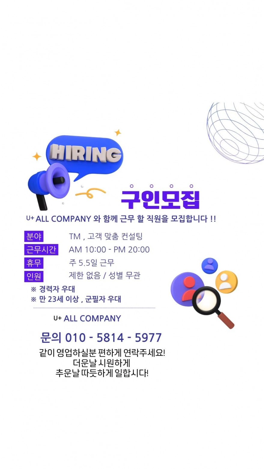 LG U+ 올컴퍼니에서 같이 일하실 인재분을 구합니다