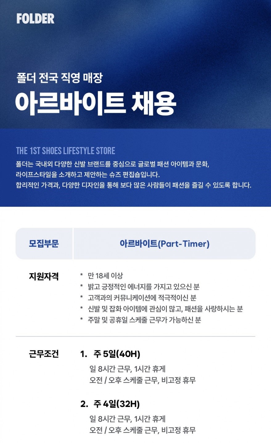 [폴더 신제주점] 주 5/4일 크루를 모집합니다.