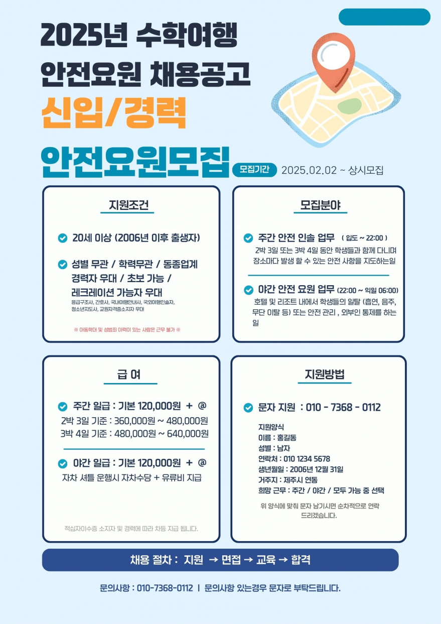 수학여행 인솔자 구인합니다 ! 페이지 정보 작성자 민O2 작성일25-02-16 15:09 조회1,525회 연락처 010-7368-0112 급여 일당 : 협의 관련링크 본문 문의사항있으시면 편하게 연락주세요 주소 : 제주특별자치도 제주시 은남3길 21 이전글 다음글 목록