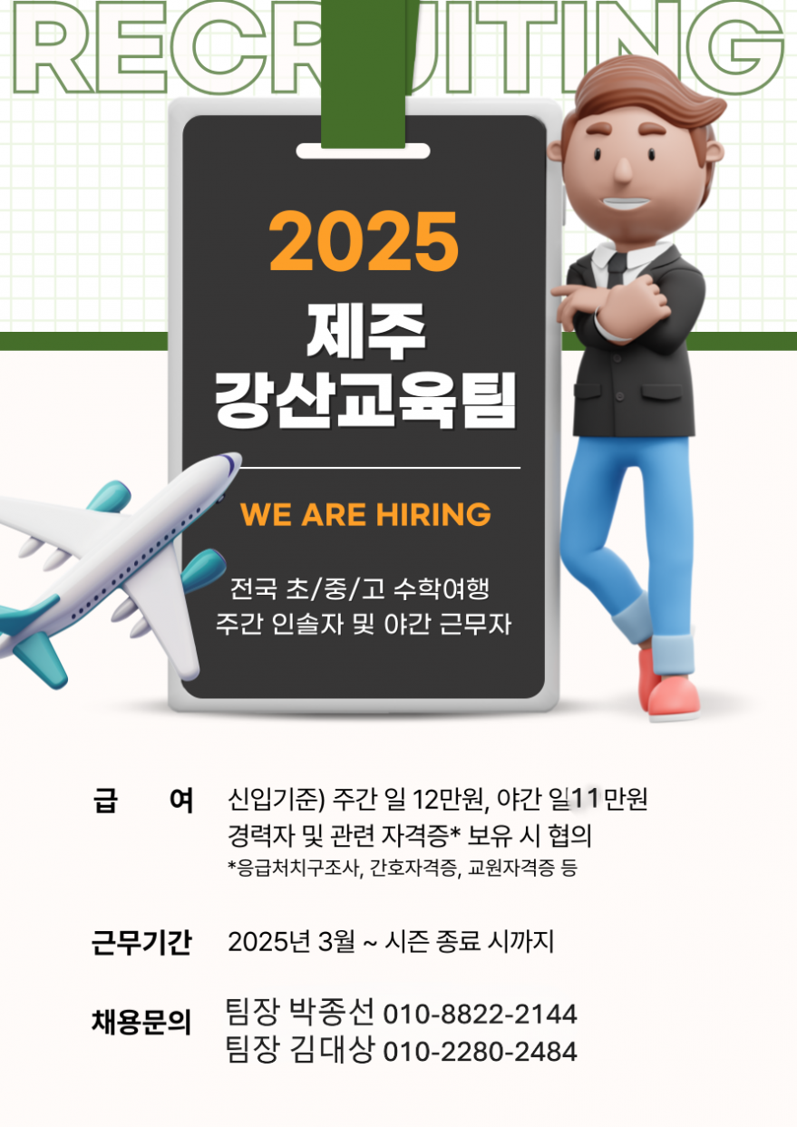 2025년 강산교육팀 5월 안전요원 모집합니다.
