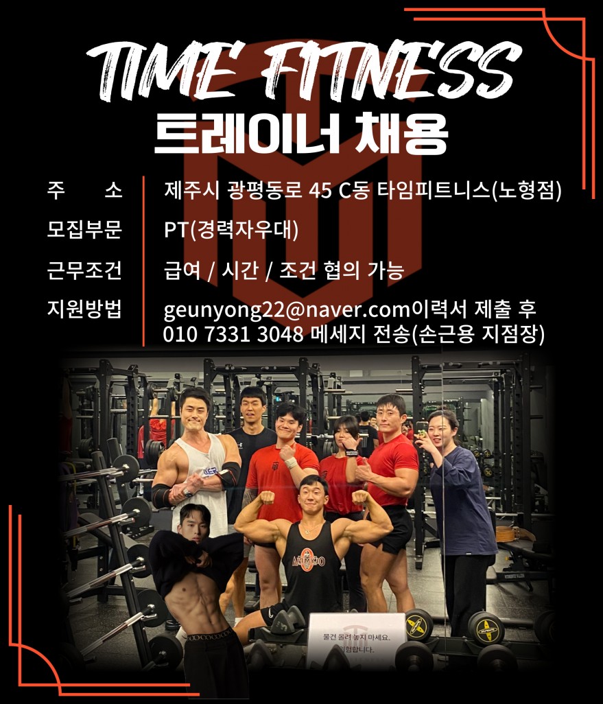 타임피트니스 노형점에서 트레이너 모집합니다!