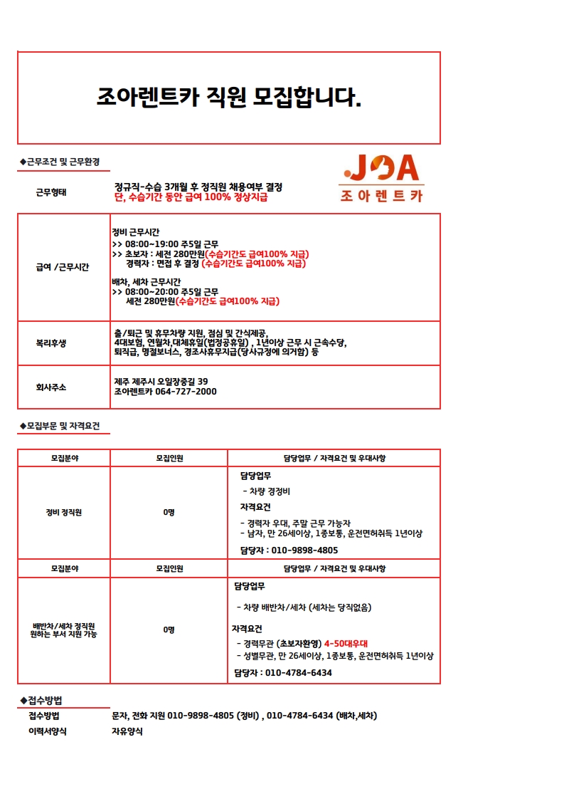 조아렌트카 정직원 모집합니다. 출퇴근/휴무 차량 지원 페이지 정보 작성자 jOOOOa 작성일25-02-04 11:04 조회1,307회 연락처 010-4784-6434 급여 월급 : 280만원 관련링크 본문 주소 : 제주특별자치도 제주시 오일장중길 39 조아렌트카 이전글 다음글 목록