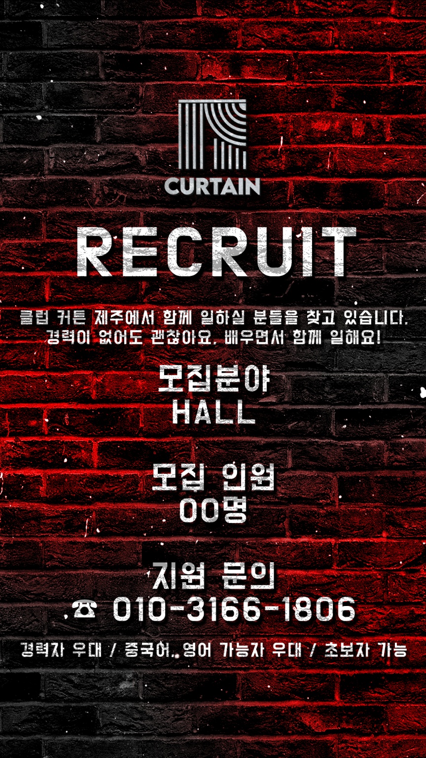 [클럽 커튼 제주] HALL STAFF 구합니다