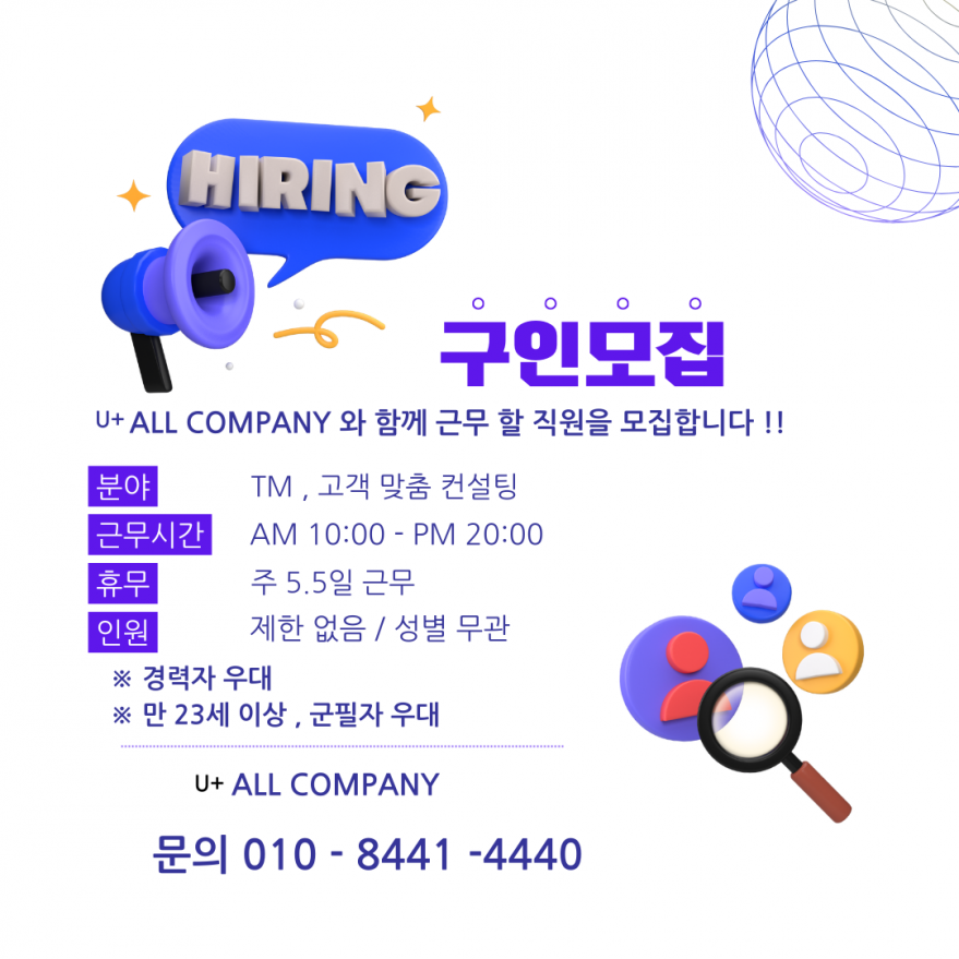 * 고객 응대 및 요금 상담 / 휴대폰 컨설팅