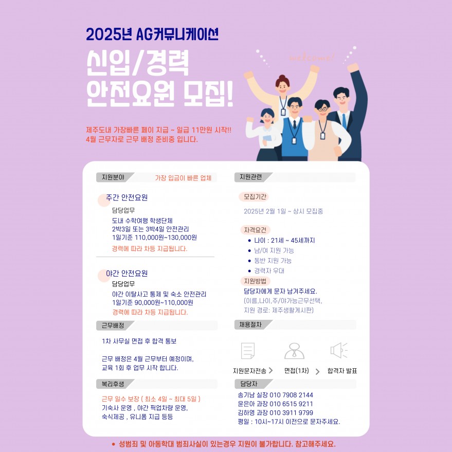 2025 AG커뮤니케이션 전반기 4월부터 같이 근무할 안전지도사를 모집합니다.