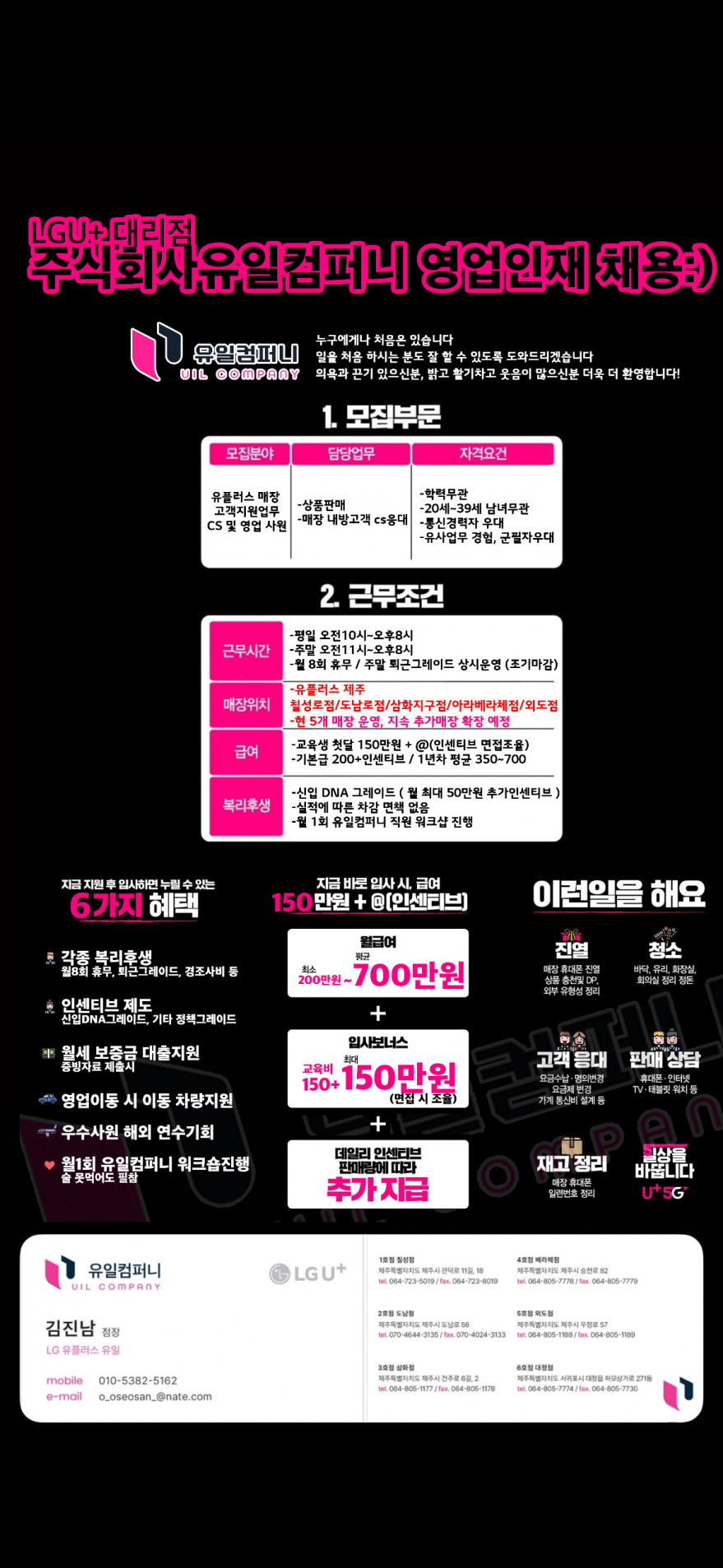 유플러스 유일컴퍼니 (7성/도남/삼화/외도/베라체/대정)