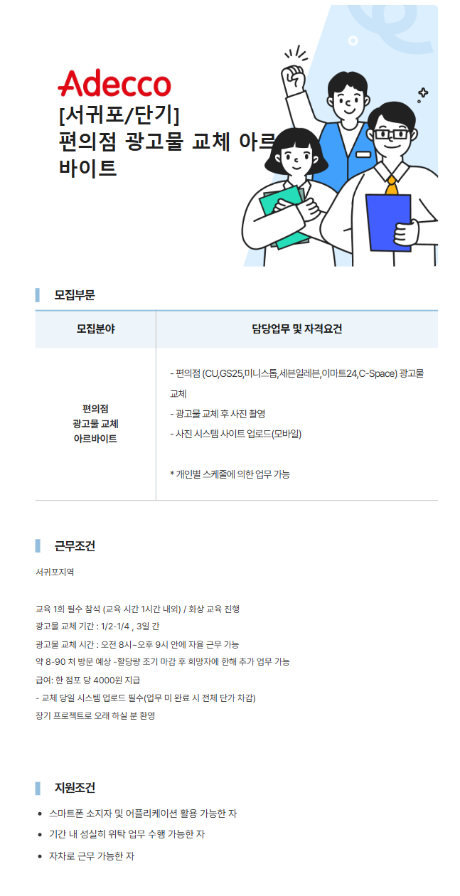 [서귀포/3일35만] 편의점 광고물 교체 단기 알바 페이지 정보 작성자 편OOOOOO체 작성일24-12-05 13:11 조회4,278회 연락처 010-7733-2777 급여 협의 : 건4000 관련링크 본문 문자지원 [성함/나이/거주지/이메일주소]자차 필수 주소 : 제주특별자치도 제주시 공항로 2 제주국제공항 이전글 다음글 목록