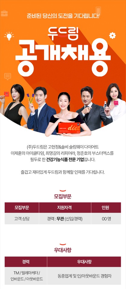 (주) 두드림은 최명길의 리피어라/ 이제훈의 아이클타임/고현정&솔비 슬림웨이 다이어트/정준호의 부스터엑스를