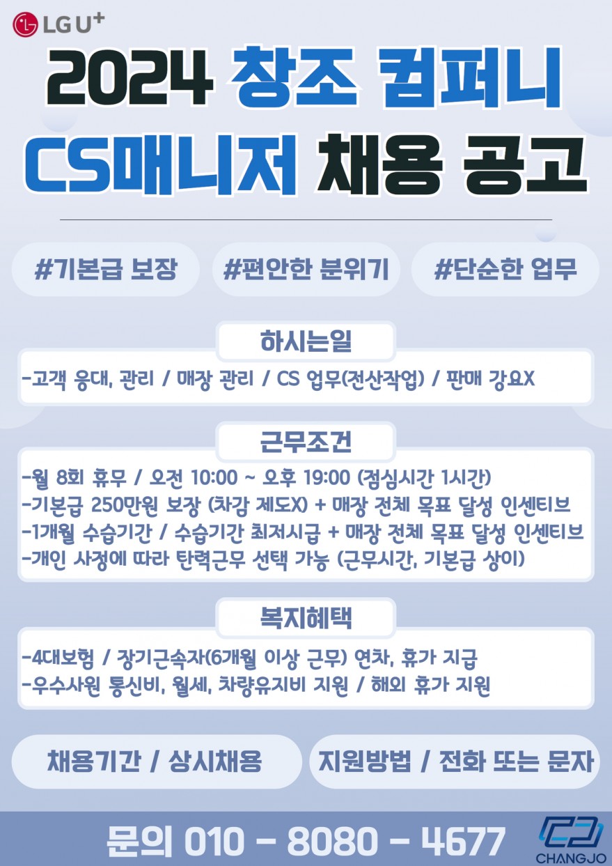 CS매니저 영업 사원 인원채용합니다 페이지 정보 작성자 유OO스 작성일24-07-24 21:45 조회3,278회 연락처 010-8080-5136 급여 월급 : 200+@@@ 관련링크 본문 어렵지 않습니다같이 돈많이 벌수 있습니다분위기 정말 좋습니다^^ 주소 : 제주특별자치도 제주시 연북로 34 1층 엘지 이전글 다음글 목록