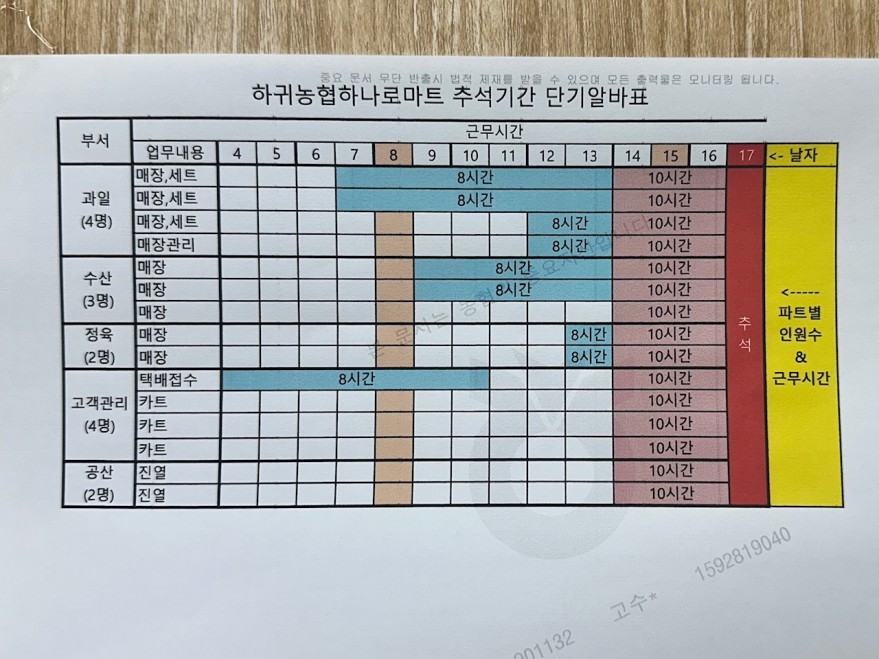 하귀하나로마트 추석명절 단기알바 구합니다.