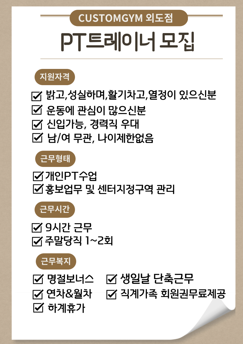 ★★ 커스텀짐 외도점에서 경력직PT선생님을 모집합니다 ★★ 페이지 정보 작성자 커OOOOO점 작성일24-06-24 09:48 조회3,569회 연락처 010-9838-3254 급여 협의 : 협의 관련링크 본문 커스텀짐본점(외도점)에서 함께 근무하실 경력직PT선생님을 모집합니다. 함께 꿈을 이어나가실 선생님께서는 언제든지 문의연락주세요 ^^ 주소 : 제주특별자치도 제주시 우령남길 12 1~2층 이전글 다음글 목록