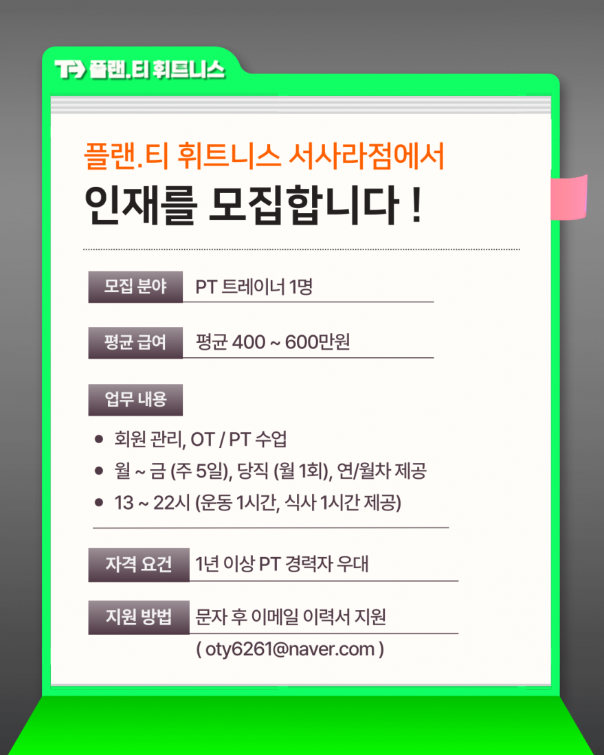 ❤️ 플랜티 휘트니스 서사라점에서 인재를 모집합니다 ❤️ 페이지 정보 작성자 플OOOOO점 작성일25-07-14 20:23 조회1,093회 연락처 010-3254-9006 급여 협의 : 400 ~ 600만원 관련링크 본문 [플랜.티 휘트니스 서사라점] 에서 퍼스널 트레이너를 모집합니다 ! 주소 : 제주특별자치도 제주시 서사로 67 플랜티 휘트니스 서사라점 이전글 다음글 목록