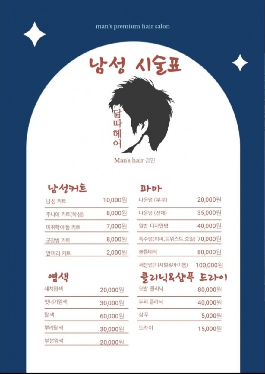 제주도 최고의 가성비와 고객님에 두상에 특화된 가볍고 새련된 커트실력과 모질에 맞춘 펌(빠마), 그리고 신속정확한 새치(흰모발)염색 등 저렴하다고 안좋은약을 쓴다? 아닙니다. 마진율을 극강낮추고 좋은 재료로 더욱 완벽한 결과물을 만들어냅니다. 네이버 예약도 가능하니 네이버에 닮따헤어를 검색후 예약또는 (010 4993 0571) 예약전화 주세요. 감사합니다