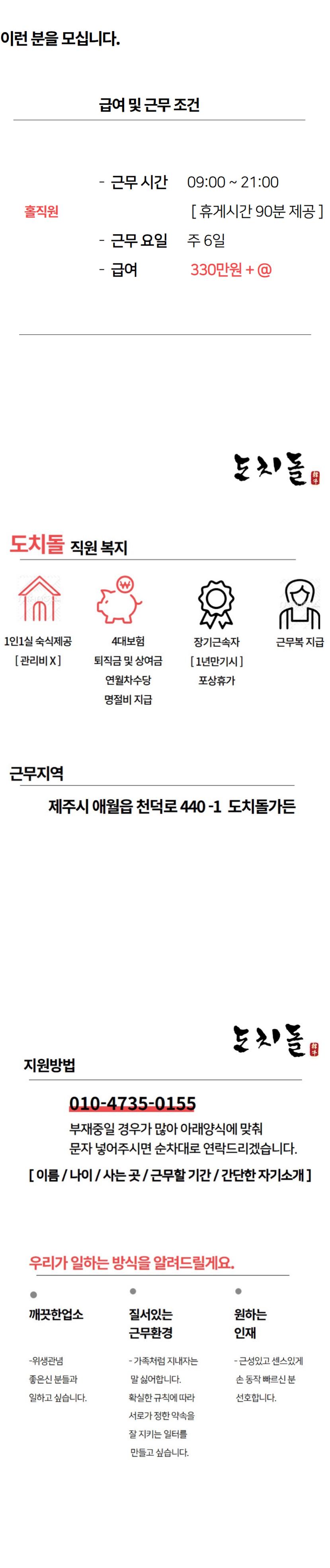 [숙식제공/1인1실]330만원_홀직원_모집 페이지 정보 작성자 gOOOOOOOOO8 작성일25-09-20 15:56 조회260회 연락처 010-4735-0155 급여 월급 : 330만원 관련링크 본문 . 주소 : 천덕로440-1 이전글 다음글 목록