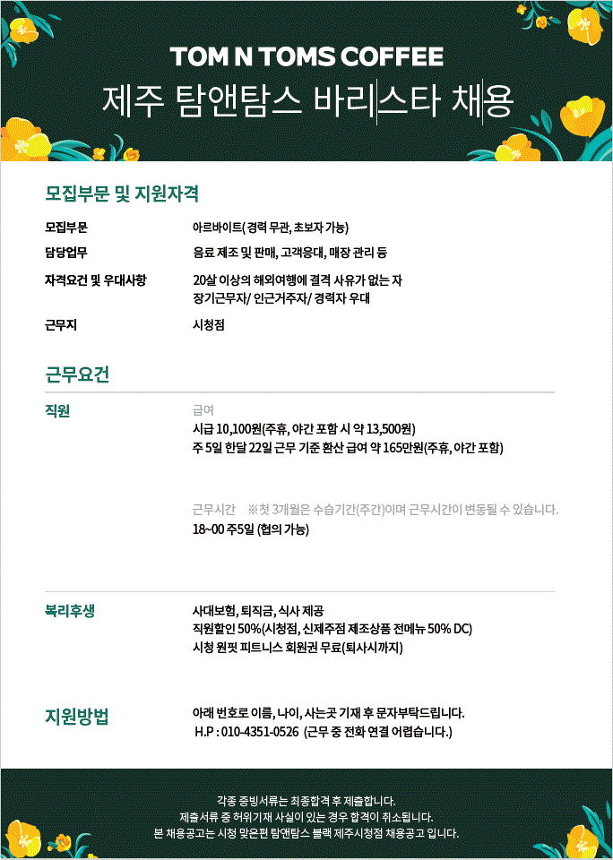 제주 시청 탐앤탐스 알바 구인 페이지 정보 작성자 TOOOOOOS 작성일25-09-20 11:16 조회310회 연락처 010-4351-0526 급여 시급 : 10100 관련링크 본문 사진 참조 부탁드립니다.!! 주소 : 제주특별자치도 제주시 중앙로 236 문산빌딩 1층 이전글 다음글 목록