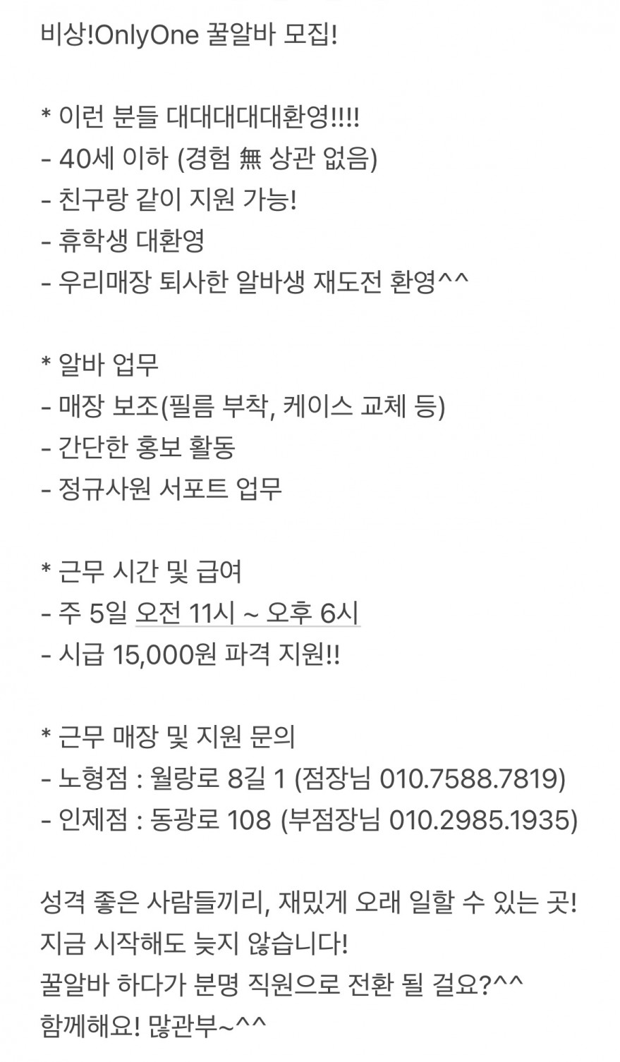 휴대폰매장⭐️시급15,000원⭐️꿀알바모집 페이지 정보 작성자 아O라 작성일25-10-31 17:59 조회686회 연락처 010-7588-7819 급여 시급 : 15,000원 관련링크 본문 - 주소 : 제주 제주시 월랑로 8길 1 이전글 다음글 목록