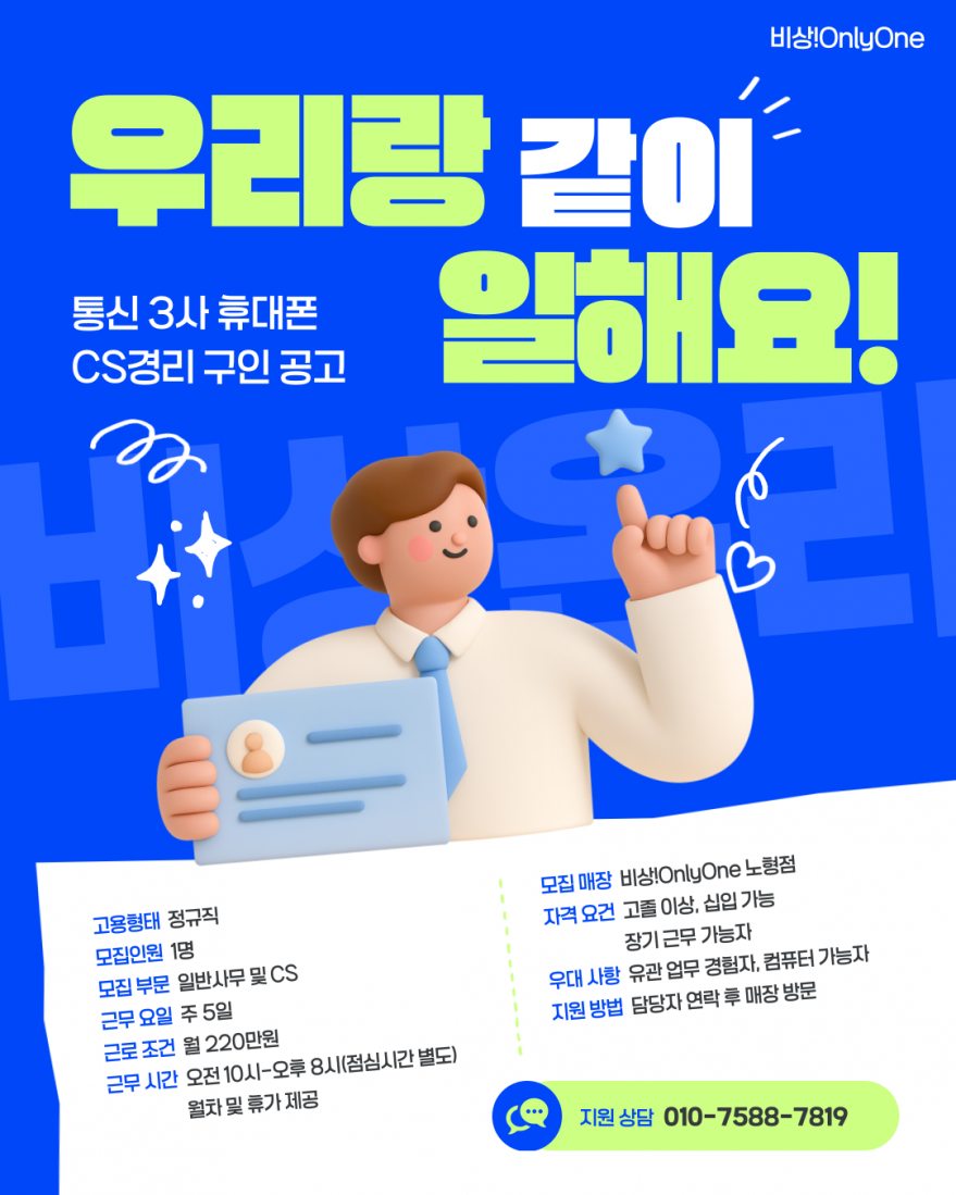 주5일근무⭐️비상!OnlyOne⭐️CS경리구합니다^^ 페이지 정보 작성자 아O라 작성일26-01-05 12:05 조회80회 연락처 010-7588-7819 급여 월급 : 220만원 관련링크 본문 - 주소 : 제주 제주시 월랑로 8길 1 이전글 다음글 목록
