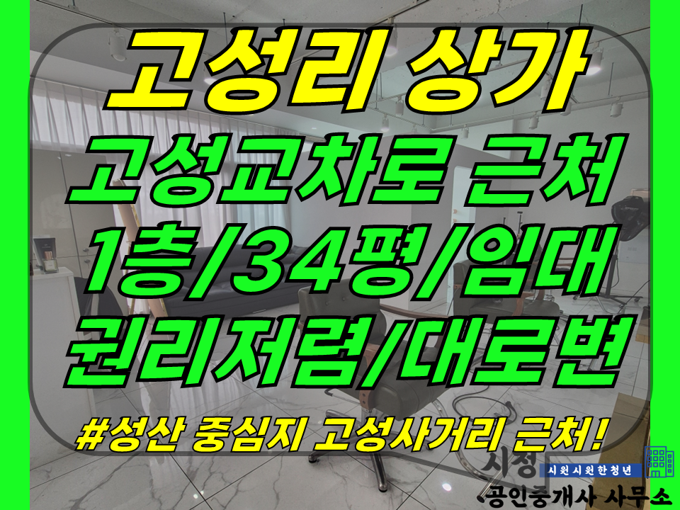 상가점포 | 상가1-418[ (급매)고성교차로 대로변+권리금 저렴! 성산읍 고성리 상가 1층 임대(34평/공영주차장 도보1분 2개/인테리어…