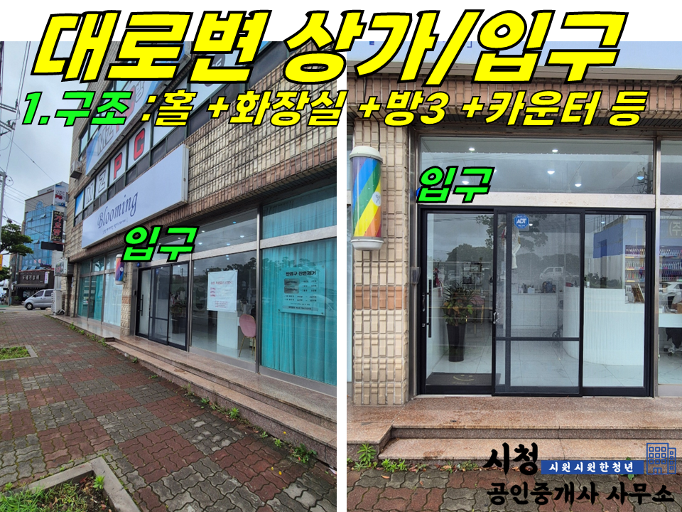 상가점포 | 상가1-418[ 고성교차로 대로변+권리금 저렴! 성산읍 고성리 상가 1층 임대(34평/공영주차장 도보1분 2개/인테리어 깔끔/…