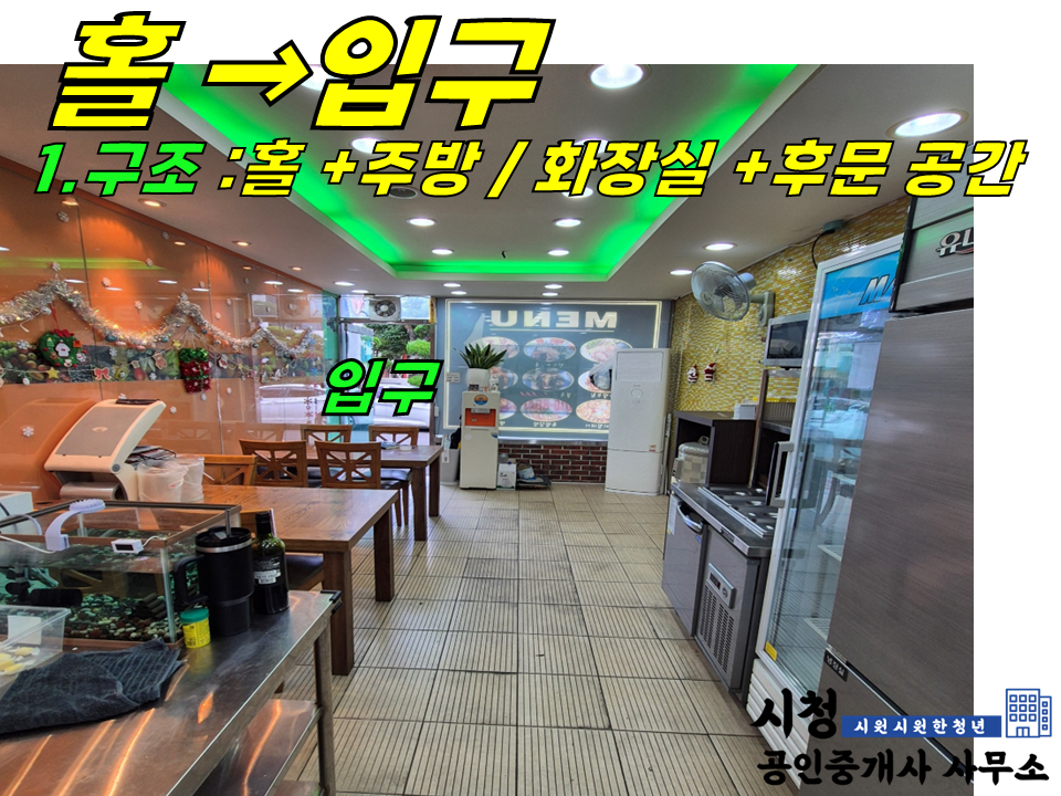 ■구조 :홀 +주방 +외부 화장실/ 후문 뒤 공간 등