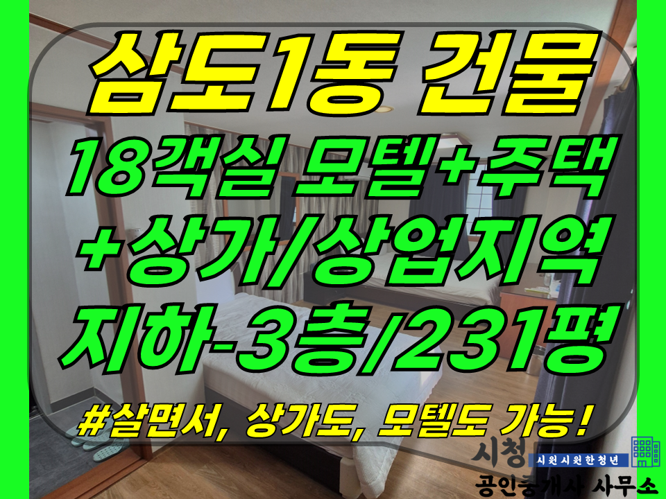 [ 광양사거리 근처+모텔,주택,상가! 제주시 삼도1동 건물 3층 매매(대지80평+건물231평/객실18개/방3개 주택/공영주차장 1분) ]