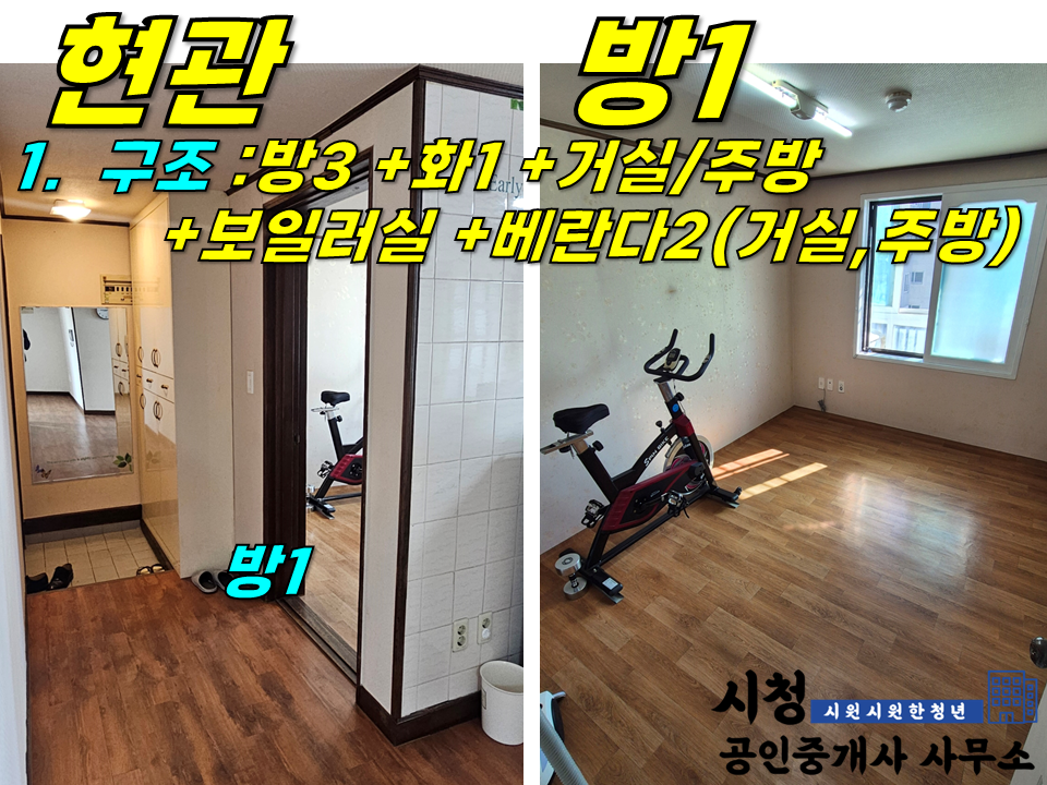 ■구조 :방3 +화장실1 +주방/거실 +베란다2( 거실, 주방 )