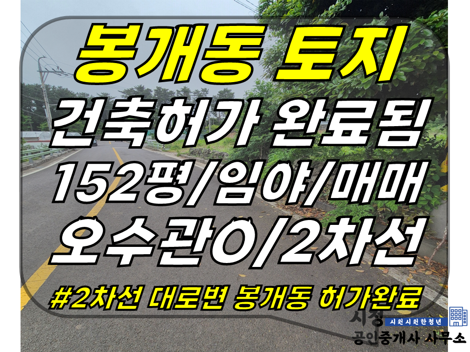 [ 주택 건축허가 완료+2차선 대로변! 제주시 봉개동 토지 매매(152평/임야/기반시설 완비/오수관 연결 가능!) ]