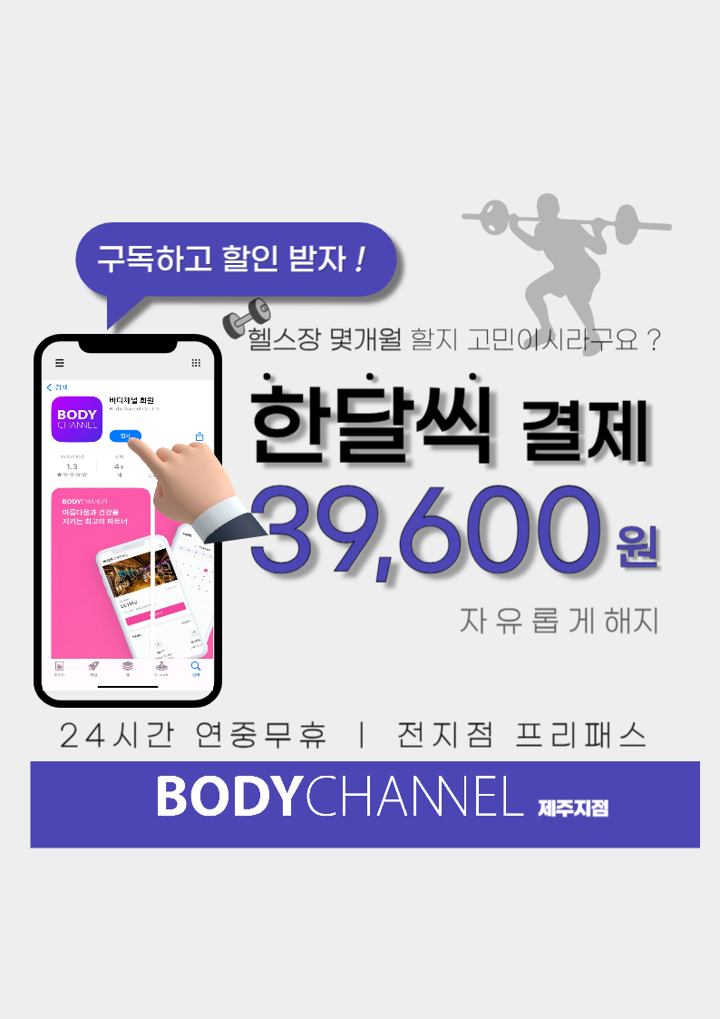 기타 | 바디채널휘트니스 월정기결제(구독) 서비스 오픈!! 페이지 정보 작성자 wOOOOd 작성일24-10-15 16:03 조회8,559회 연락처 010-6848-7662 관련링크 본문 이제는 헬스도 몇개월 할지 고민하지말고월39,600원으로 합리적인 금액으로 정기구독으로 이용하고 자유롭게 해지도 가능!※바디채널 앱에서 구독상품 결제 가능!! 이전글 다음글 목록