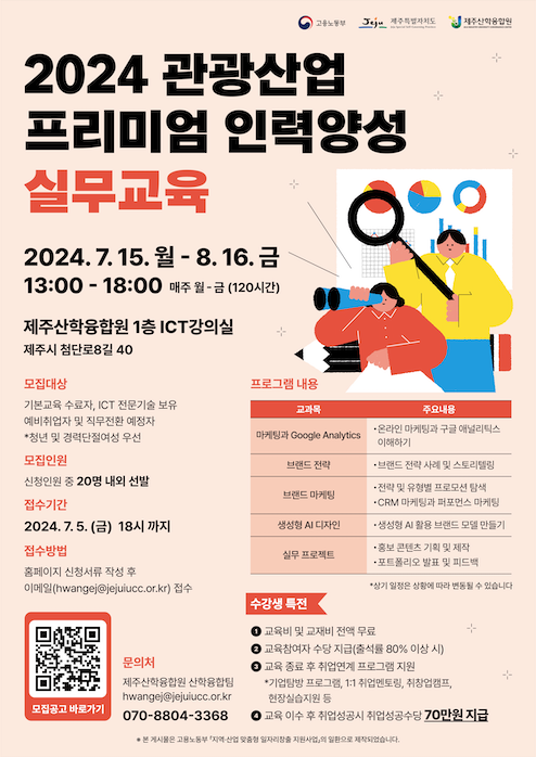 기타 | 무료 교육부터 취업 연계로 70만원 취업성공수당까지! 2024 관광산업 프리미엄 인력양성 실무교육 교육생 모집