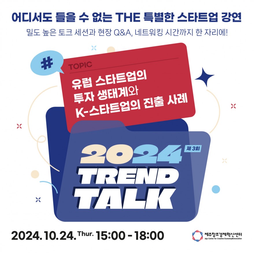 제주창조경제혁신센터에서 주관하는 TREND TALK가 다시 돌아왔습니다!