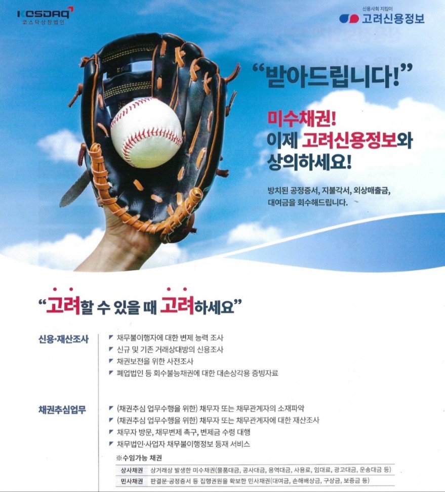 채권추심 <전국1위> 고려신용정보입니다. 페이지 정보 작성자 kOOOOOOe 작성일25-04-14 09:36 조회3,548회 연락처 010-4309-8569 관련링크 본문 상담 필요하신분들 무료로 상담 해드립니다. 이전글 다음글 목록