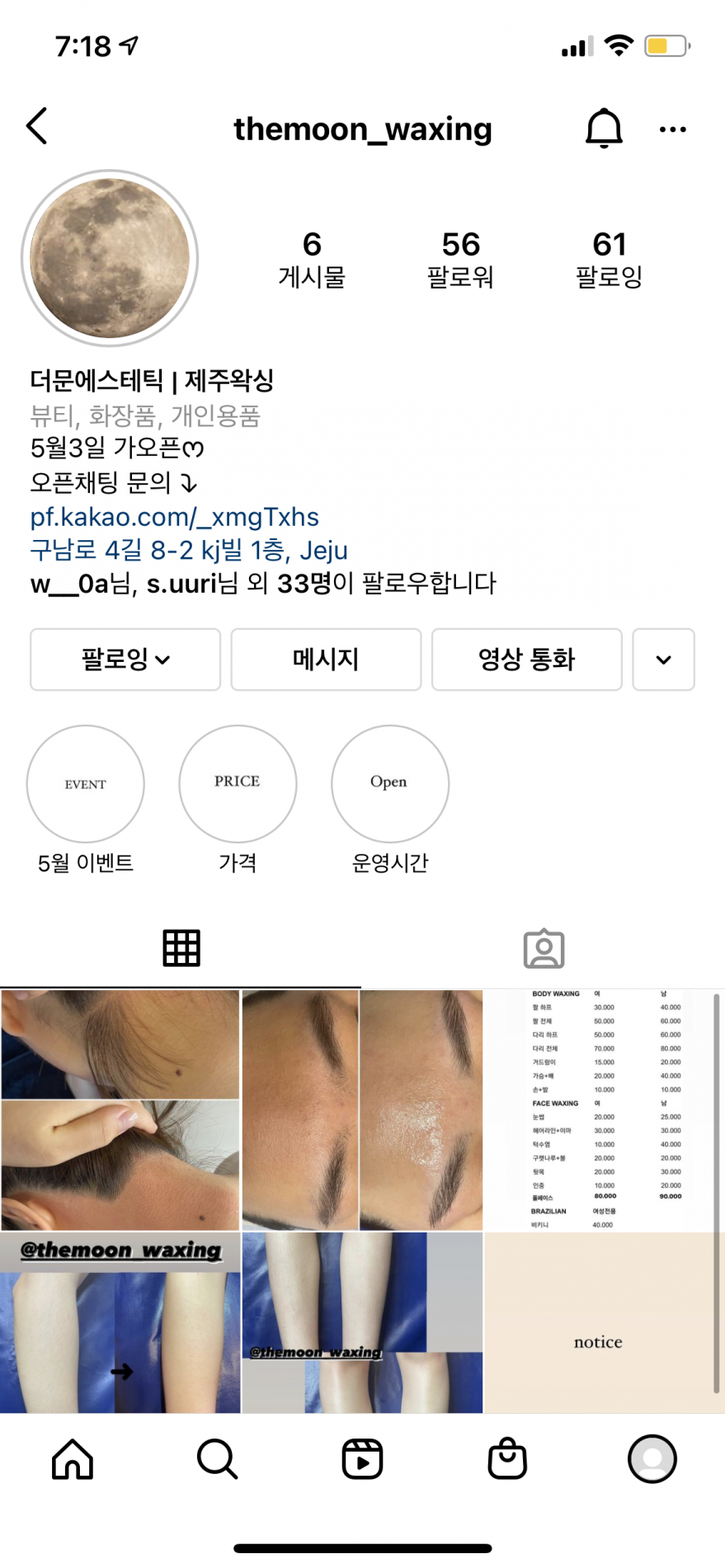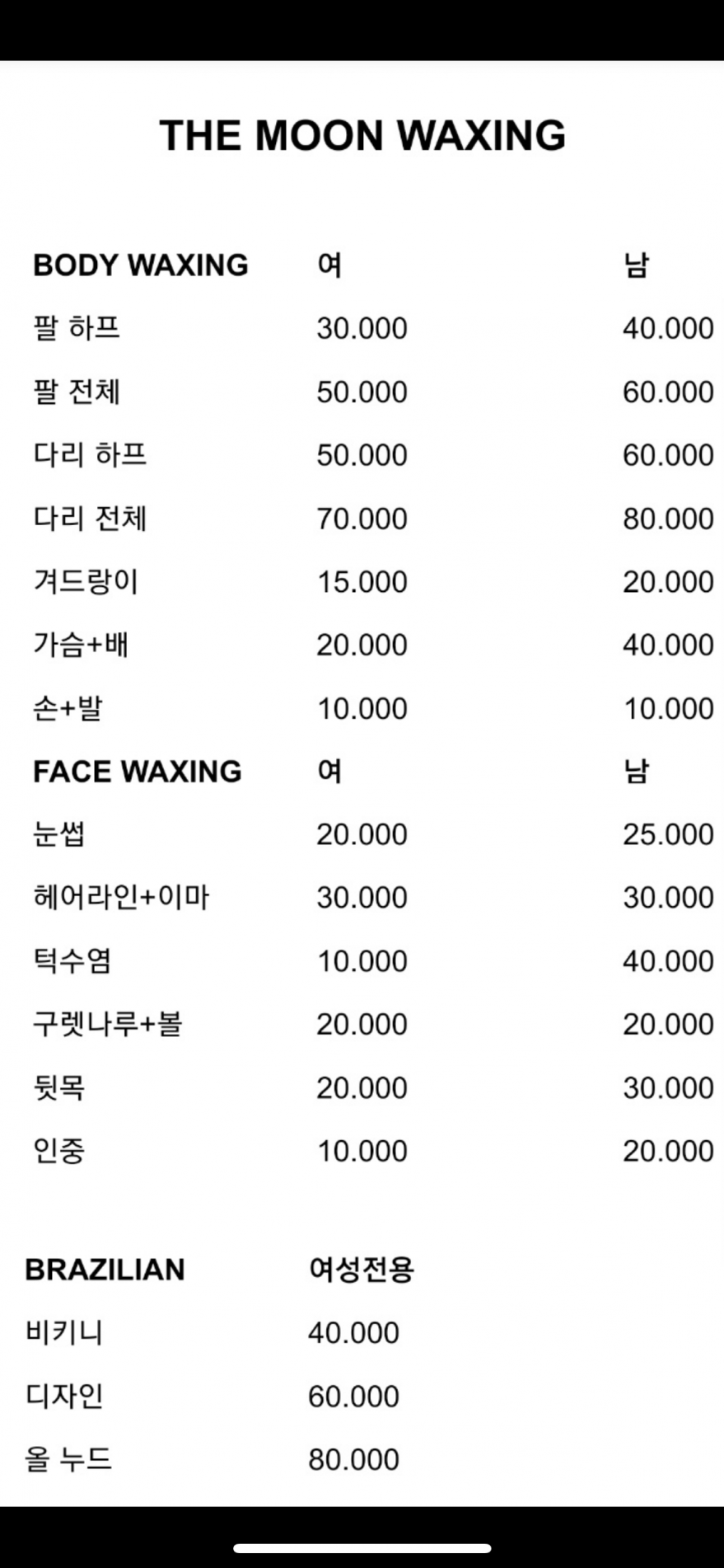 현재 5/3-6/3일 까지 한달동안 가오픈 50%이벤트로 모든 가격 반 값할인 진행하고 있으니까 놓치지 말고 꼭 왁싱 하러오세요!