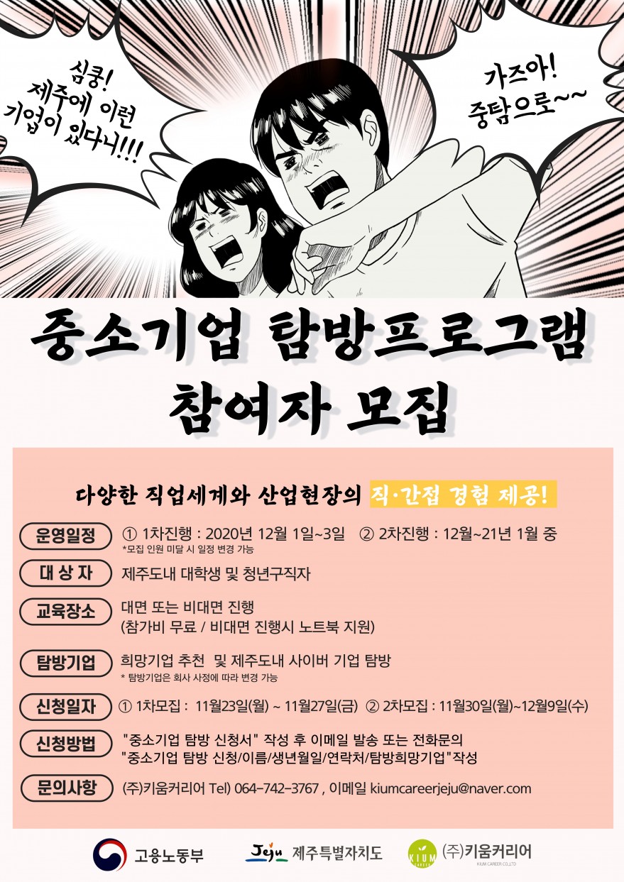 [2020 중소기업 탐방 프로그램] 제주지역 대학생 및 청년구직자 모집합니다.
