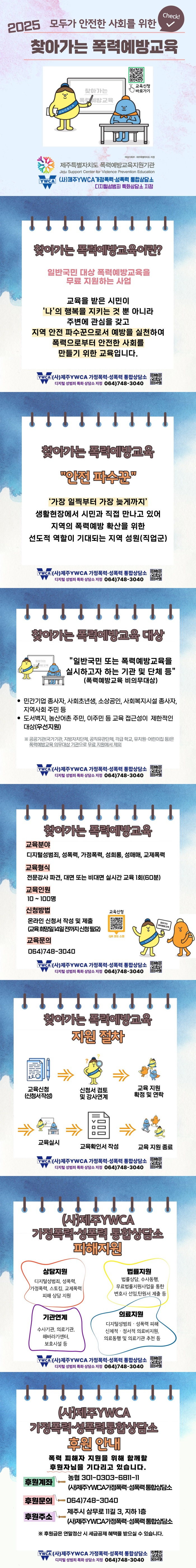 2. 2025년 여성가족부와 제주특별자치도 수탁 폭력예방교육 지역지원기관으로 선정됨에 따라 『찾아가는 폭력예방교육 』을 시행합니다.