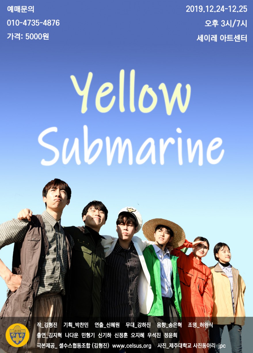 안녕하세요. 제주대학교 연극 동아리, 극예술연구회입니다!! 제주대학교의 38회 정기공연 <노란잠수함>이 올겨울 크리스마스에 공연될 예정입니다~