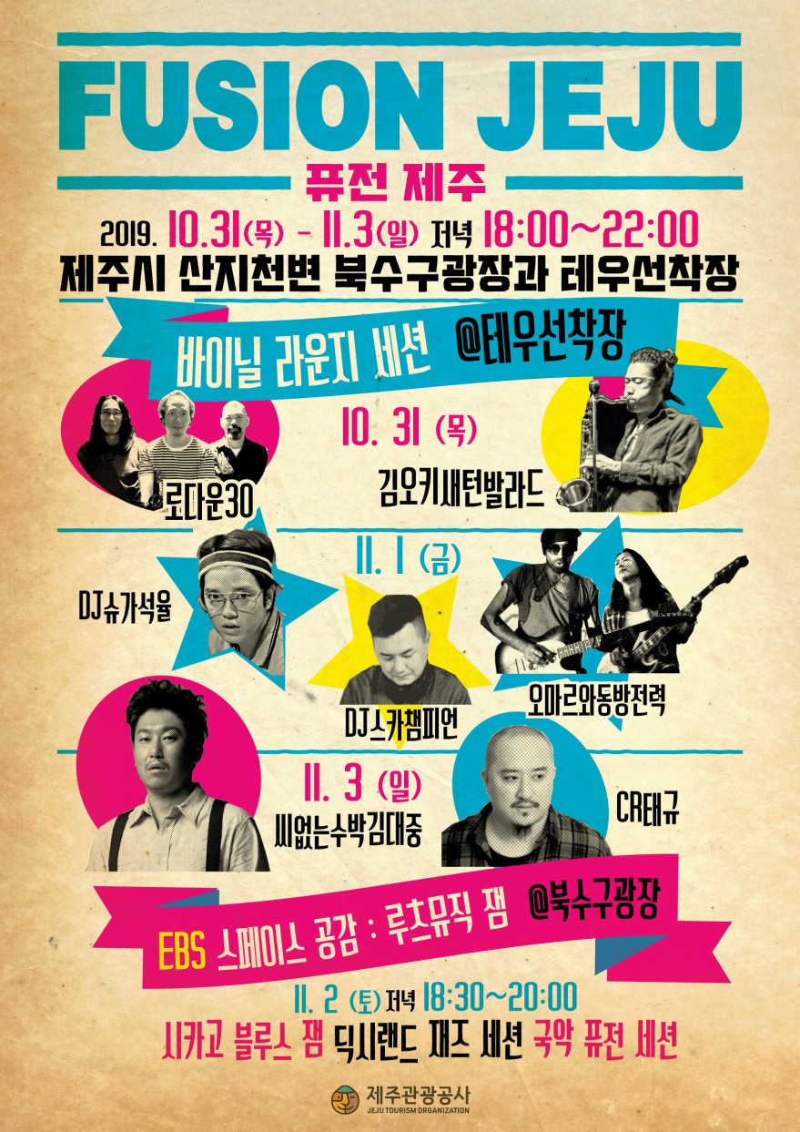 ★FUSHION JEJU 퓨전제주 음악축제★- 10월 31일 목요일 ~ 11월 3일 일요일 / 18:00 ~ 22::00(* 11월 2일은 스페이스 공감 공연이라 해당 날짜만 장소가 달라요!)