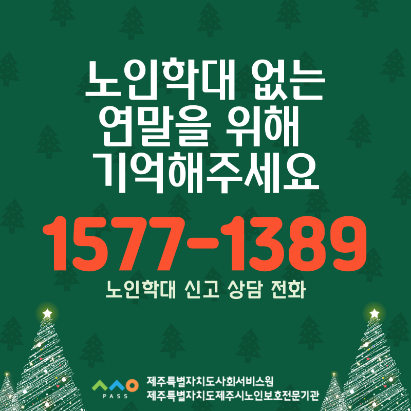 안녕하세요! 제주시노인보호전문기관의 2024년 마지막 노인학대예방포스터를 공유해 드립니다^.^