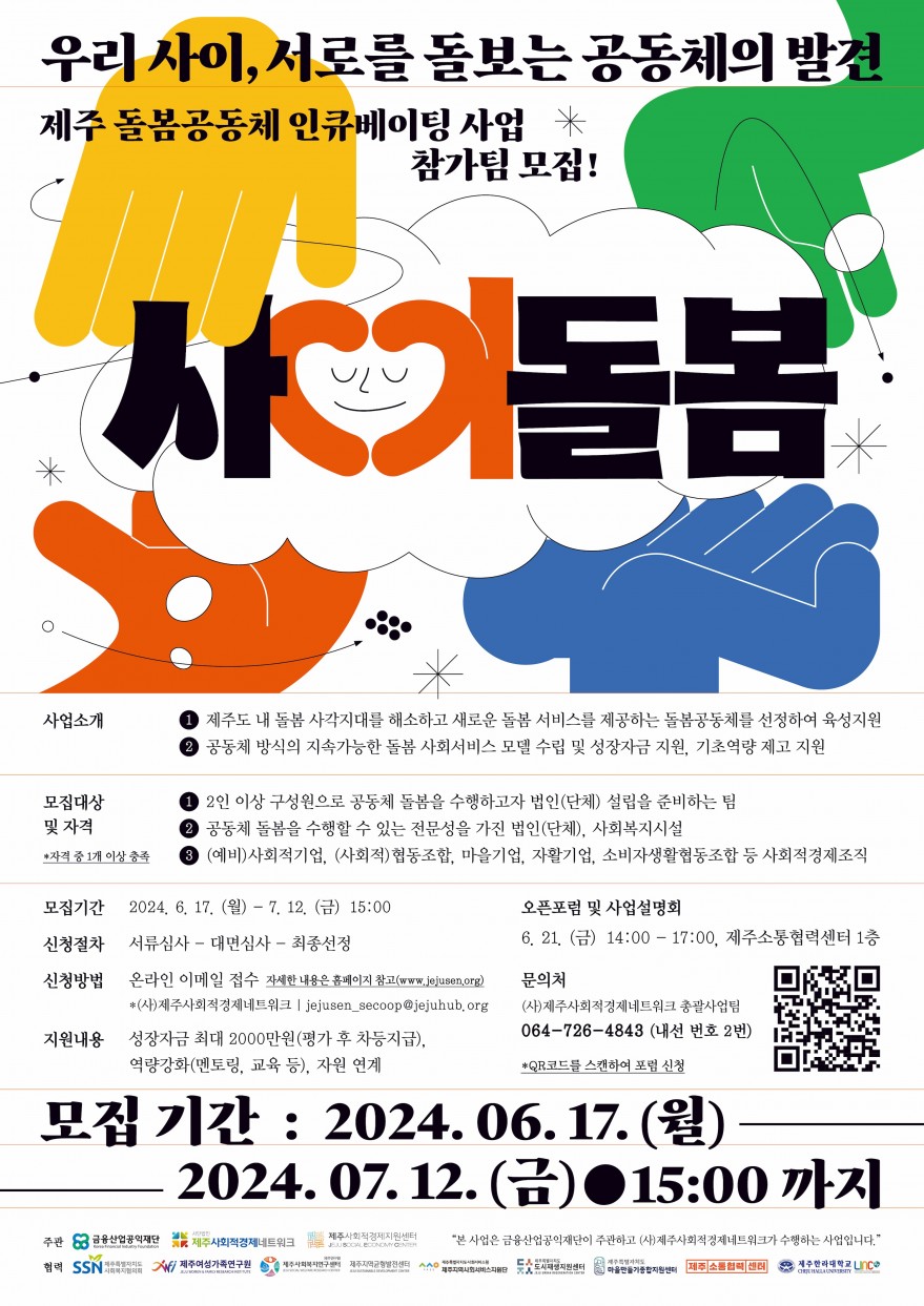 [지원사업] 제주 돌봄공동체 인큐베이팅 사업 참가팀 모집
