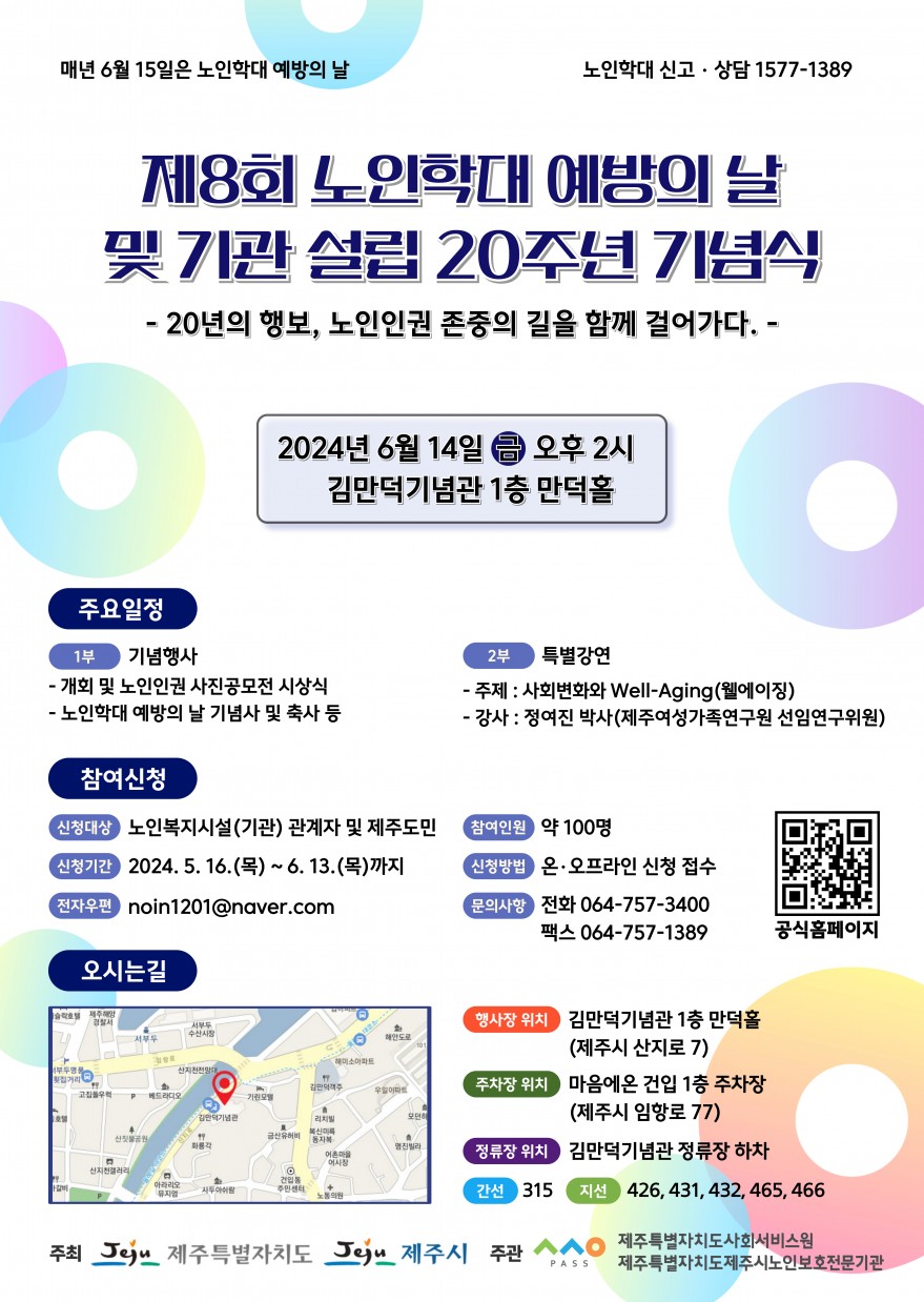 제8회 노인학대예방의 날 및 기관 설립 20주년 기념식이 개최될 예정입니다.