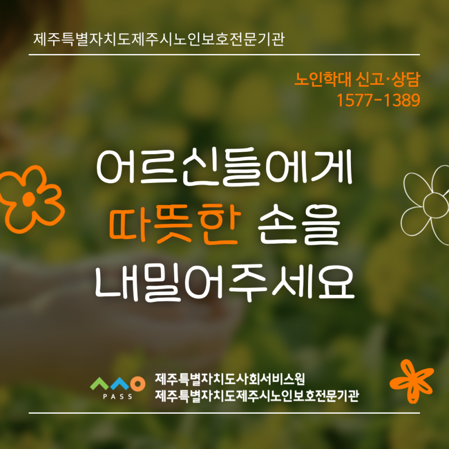 [제주특별자치도제주시노인보호전문기관] 4월 노인학대예방 포스터 페이지 정보 작성자 제OOOOOOOOO관 작성일24-04-02 10:39 조회5,426회 연락처 010-4690-1589 관련링크 본문 안녕하세요 제주시노인보호전문기관입니다~✨✨벚꽃도 만개하고 완연한 봄 날씨가 찾아왔어요날씨 만큼이나 아름다운 여러분의 따뜻한 마음을 어르신들에게 나누어주세요.더불어 학대피해노인을 위한 해피빈 모금함 기한이 얼마 남지 않음을 알려드립니다 QR코드를 통해 접속하실 수 있어요.https://happybean.naver.com/donations/H000000193754#제주특별자치도제주시노인보호전문기관#노인보호전문기관 #제주 #제주시#노인학대예방 #노인학대신고 #15771389#해피빈 #기부 #모금함 #어르신 #정기기부 이전글 다음글 목록