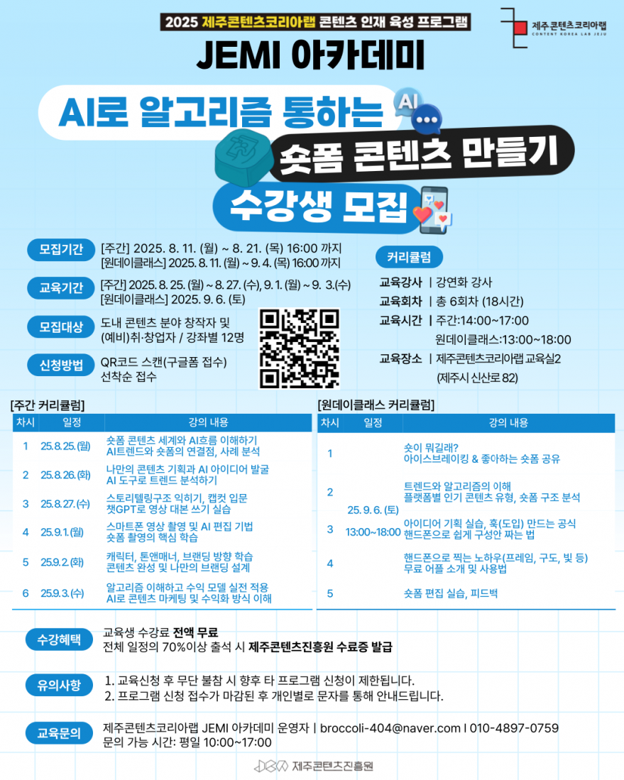 [제주콘텐츠진흥원] 2025 JEMI 아카데미 – AI로 알고리즘 통하는 숏폼 콘텐츠 만들기