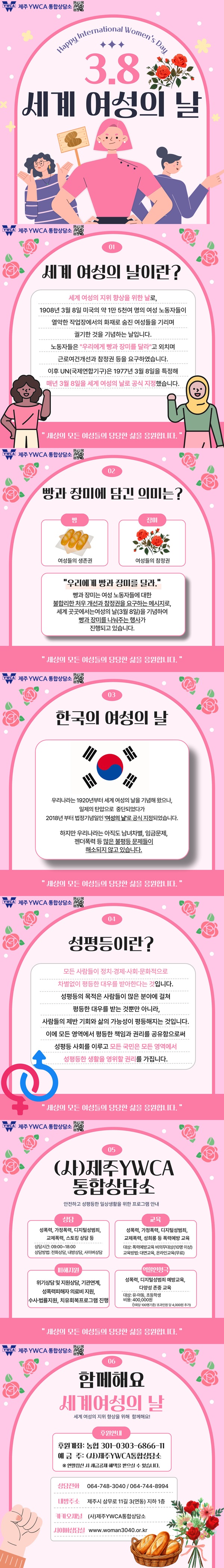 3.8 세계 여성의 날을 아시나요? 페이지 정보 작성자 제OOOOOOOOO소 작성일24-03-05 14:45 조회5,230회 연락처 010-2389-7654 관련링크 본문 3.8 세계 여성의 날을 아시나요? 우리 함께 세계 여성의 날을 알아보고 세계 여성들의 지위 향상을 위해 함께 해요! 이전글 다음글 목록