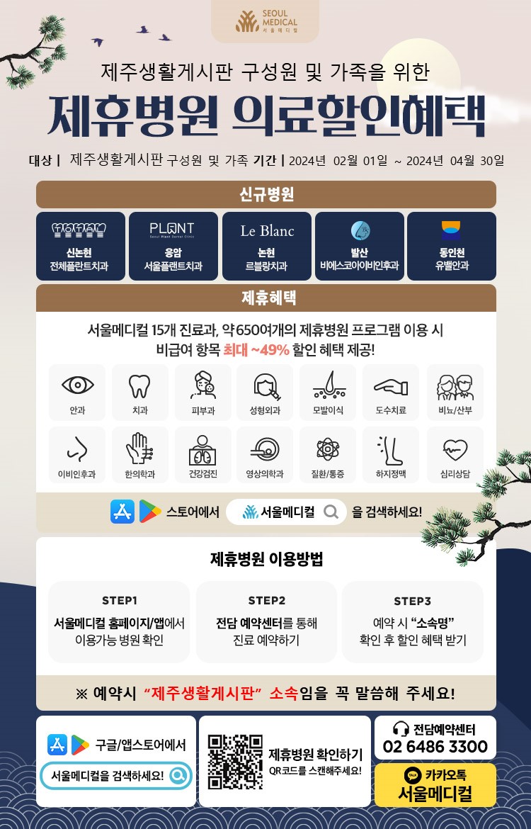제주생활게시판 구성원들을 위한 의료복지(약 650개 진료 프로그램)
