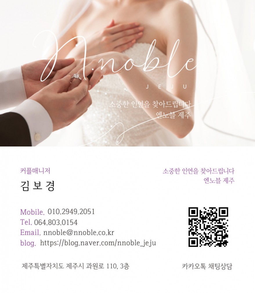 안녕하세요 엔노블 제주지사 커플매니저 입니다.