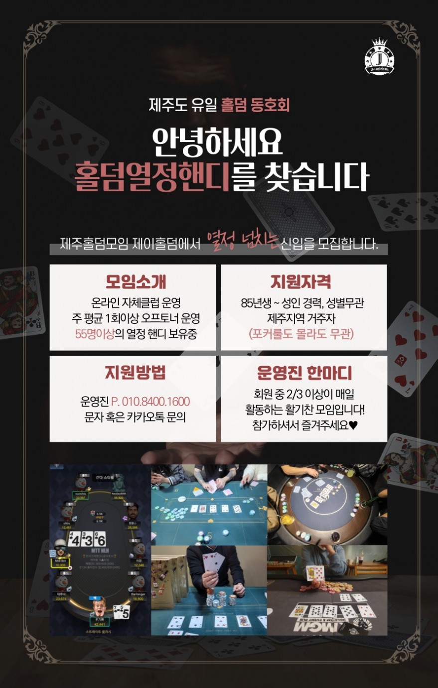 저희 모임은 제주 유일의 Hold'em 모임으로서