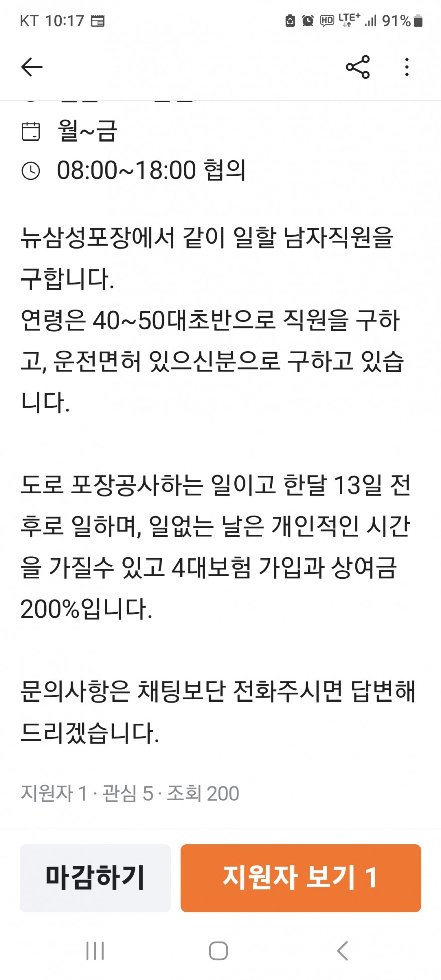 뉴삼성포장 건설업에서 같이 일하실분 페이지 정보 작성자 후OO이 작성일23-06-20 20:05 조회4,439회 연락처 010-4692-8047 관련링크 본문 월급은 세전 240 만원입니다. 이전글 다음글 목록